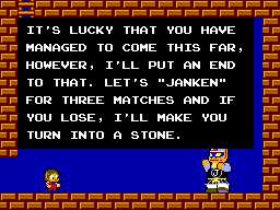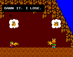 In the Alex Kidd universe, Janken (Rock/Paper/Scissors to all you not 'in the know') is more than a game, it's that thin line between life and death.