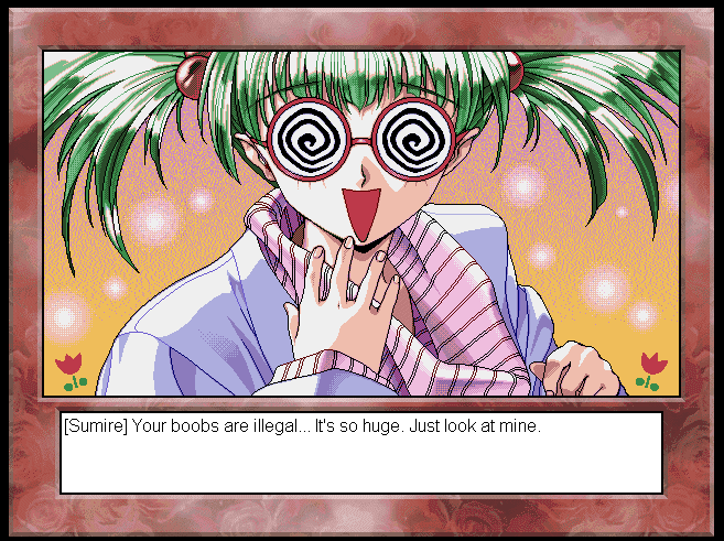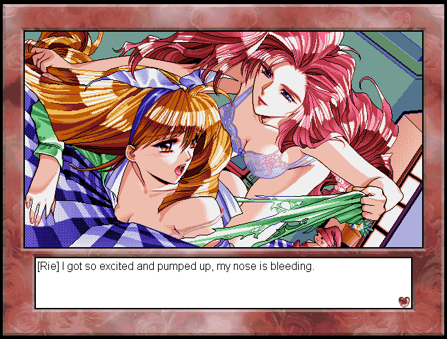 Well, let me just venture a guess... But I'm thinking this game involves a lot of sex, possibly lesbian in nature. And, just another wild guess, but all the girls are gorgeous and have enormous racks unless they're the obligatory lolita in the cast. But, I don't know, I guess I'll JUST HAVE TO TRY IT. Oh well.