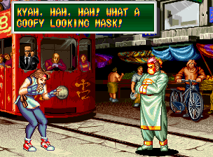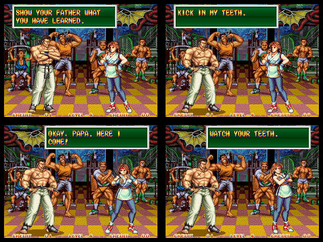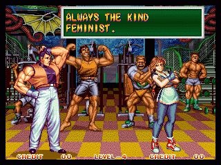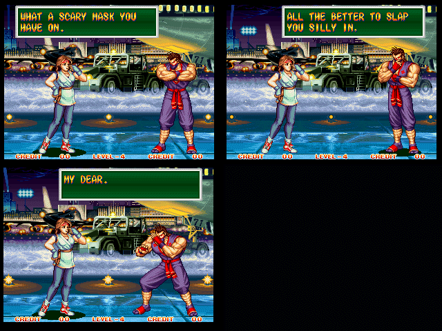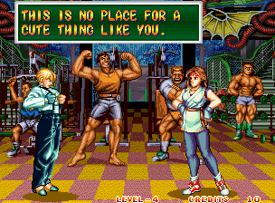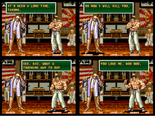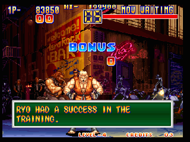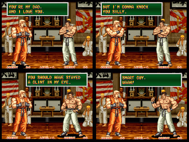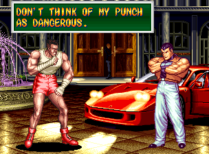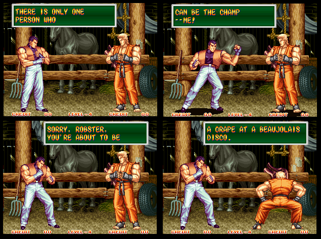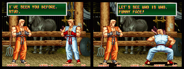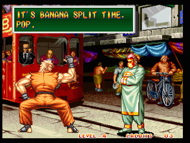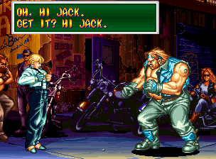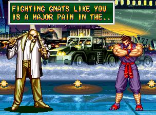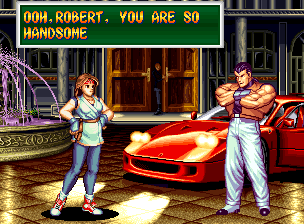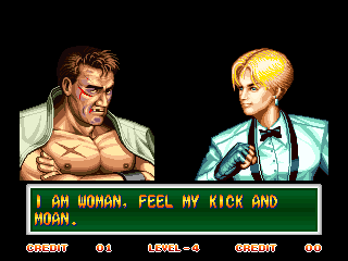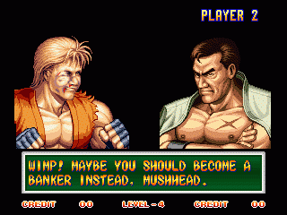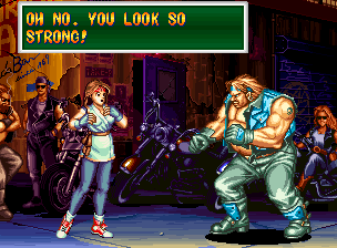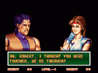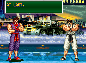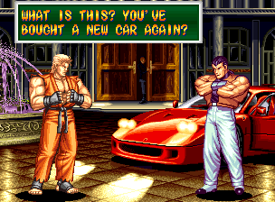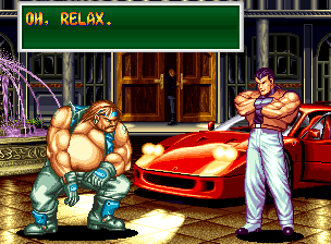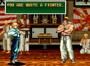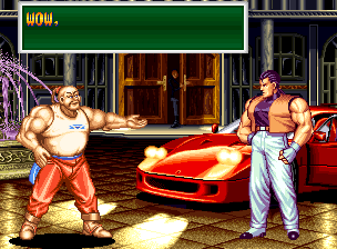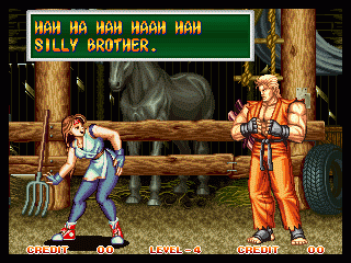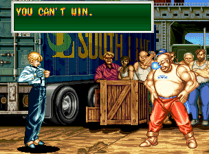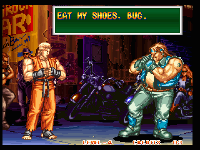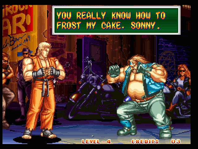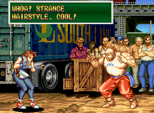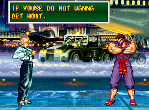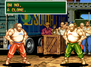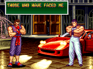 Art of Fighting 2. Still slow, unoriginal, and clunky. BUT THE GRAPHICS ARE BIG!! Thank you SNK publicity department.