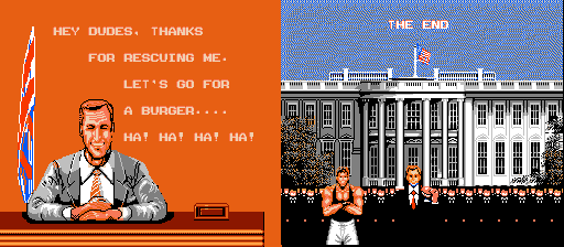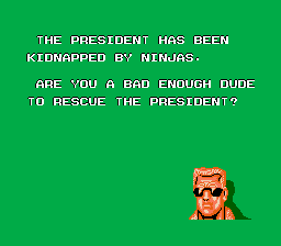 Okay, this is just retarded. Bad Dudes was a generic beat 'em up for the NES. Taking advantage of America's love of crappy beat 'em ups and using the 'heppest, grooviest' slang, they released one bad game. And I don't mean that in a Michael Jackson sort of bad, I mean like, bad. Contributions from from A.E. Isthill, still protecting the USA from the Ninja menace. |