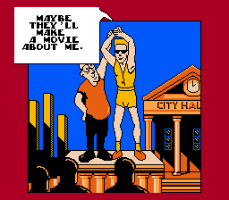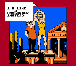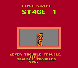 "Friends come and go. But enemies accumulate." And this damn game goes right into the marrow and TEARS YOUR BODY APART FROM THE INSIDE | Battle cry of the schizophrenic | Dammit, Bad Street Brawler, stop molesting that dog! | Indeed, you won't be feeling it for long when you play this game | Uh... Sure thing... | Inspired words from the spandex man himself | Yeah, logic pretty much proves that... | NO | .... | Well, tough shit, if you were a Bad Dude you would get a burger with Reagan, but because you're only a Bad Street Brawler you get dick |