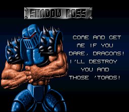 Hey, that's not the grotesque mutant Abobo we all know and love... That's just a barabarian from some geek's "fantasy art" collection wearing jeans! | Yes, a second-rate hurricaine kick will certainly help when fighting 20 foot tall rats and giant robots | I'm scared. Really. | Dark Queen never was a CLEVER villian... | But as I can see, your taste in being in a good game is slightly lacking | DIE YOU FUCKING STUPID PSUEDO-FURRIES! | AND FUCK YOU! YOU'RE NO NINJA TURTLE! | OK... I'll calm down and just say that maybe this guy should maybe have spent the extra five bucks and got a good speaker | Really, what game of Double Dragon would be complete without the "big guy who has a gun"? | Wow... Is that the Shockmaster? Oh no, EVIL GOT AN UPGRADE! | AND FUCK YOU TOO! GOD BATTLETOADS SUCK! HUAGHLAGALGA!!!