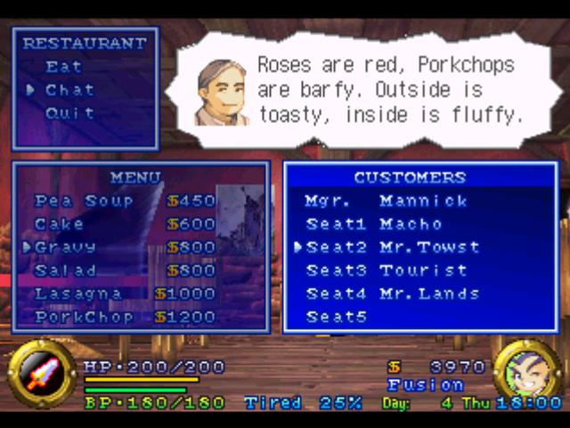 And sponsoring this section of the website, the classiest joint in Allucaneet Villiage, the Mannick Restraunt!
