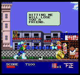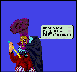 Your state-of-the-art sound effects are no match for Bravoman! | HA! I think not. | Especially after I installed that cannon in my head... | They captured Lottery-Man?! If I don't rescue him, the world will descend into anarchy! | I'am still waiting | Push run? Huh? | Come on! Push it! | P-push it real good! | Best. Credits. Ever. | Only if you get mine first | No! Don't cough on me! You'll give me death! | It's not Stavromula Beta, is it? | Don't you wish all endings were like this? | ...or what? What are you trying to say? | Have you been sniffing your hair dye again? | And behind all this bull shit is...Encoreman? | That's the most intimidating speech from a final boss I've heard in years. "I'M A NICE GRAYHAIRED MAN." | They ride a seahorse, and speak in code that's Morse! | Oh no! | His right hand has a name? That's...kinky | The Japanese sure know how to make a telephone box. | I'll vanquish him with whatever the hell I want to, you crazy bastard | Oh yeah? Well...BRAVO! | You'll spend your days in a craze, when you're lost in a maze | A little too modern, unfortunately | Go out and yell this at someone you love. I don't know why, just do it. | I think Dr. Bomb's getting a little annoyed | Come back here! BRAVO! | OHCH! | Do not punch the inanimate objects, Bravoman | The most despicable villain in the universe...and he's left me with the bill! | DO YOU HAVE STAIRS IN YOUR HOUSE | GooseAss, this one's for you | And make sure you revenge Joe's brother while you're at it | Stop that, Bravoman. | Seriously. Cut it out. | Oh, Bravoman. When will you learn to control your violent temper? | ROCK!!! | Good idea, friend from Planet Alfa! After that, maybe I'll try ducking when he shoots at my head! | Does it have something to do with pistols? | Ooh! You bitch! | I noticed. | That's...nice to know. | I'm speechless. Again. | Yes. | Ow! You're torturing my toe! | Awwww... | Community service at the old folks' home? | Apparently not. | You can tell by the look on Bravoman's face that he's starting to get embarrassed | Thank you sir, may I have another? | GO AWAY. | YHAA!