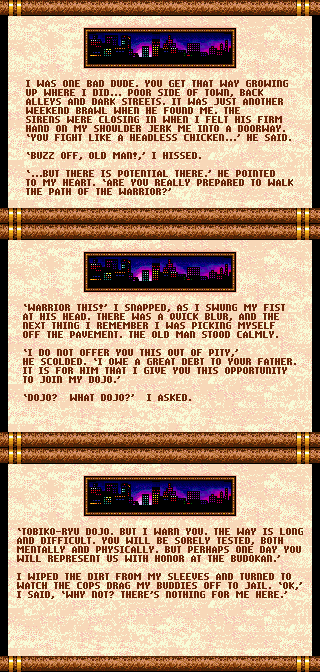 The intro. For full effect, imagine that it's being read aloud by Tom Waits. "Buzz off, old man! Warrior this!"