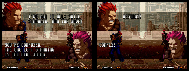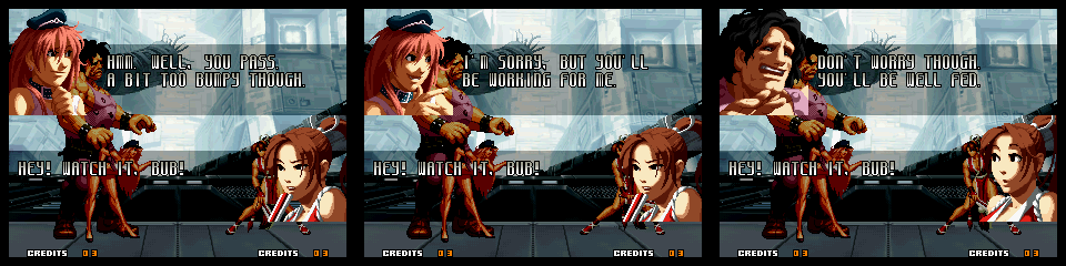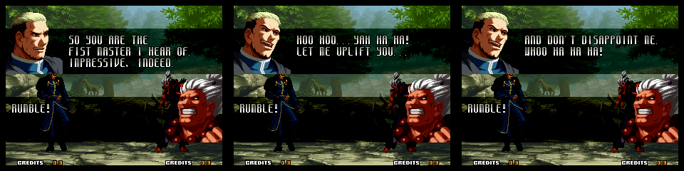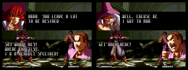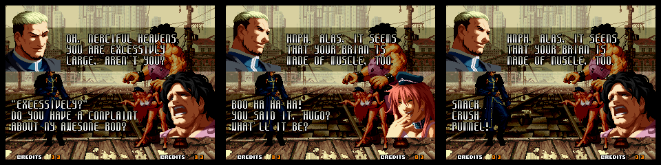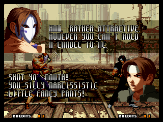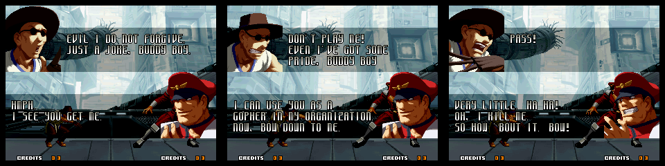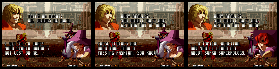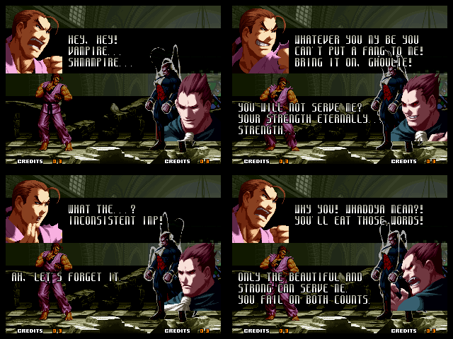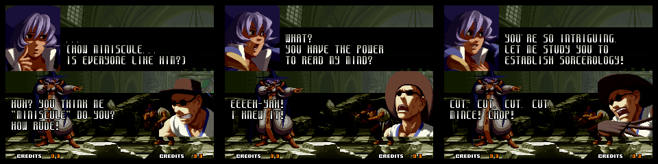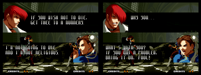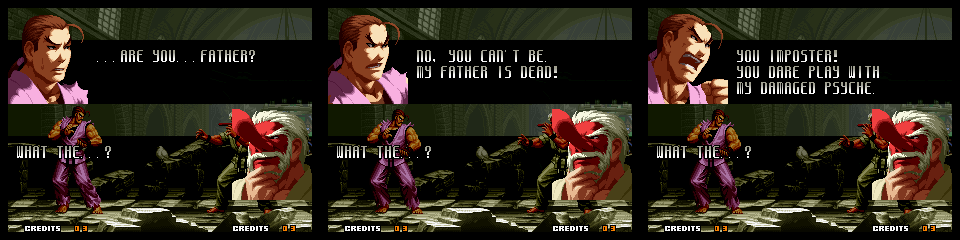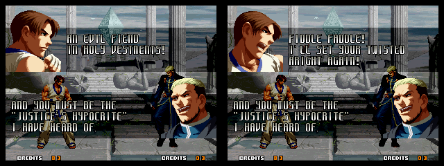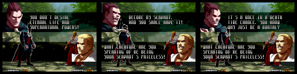 Kim: Oh, so Goenitz is an evil priest in a fighting game. That's something new |
