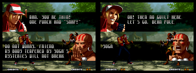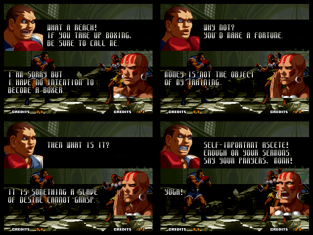 That's not a very fear-inspiring battle cry Dhalsim has |