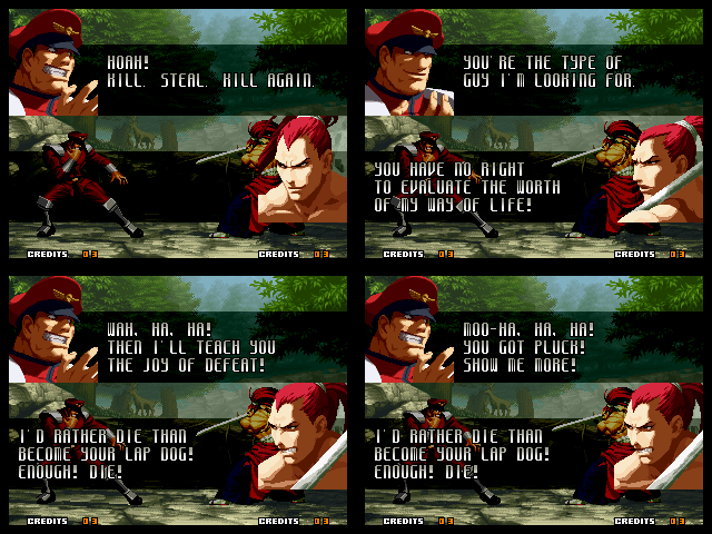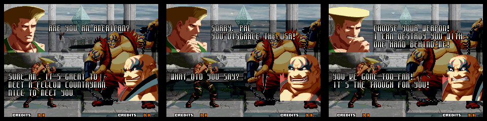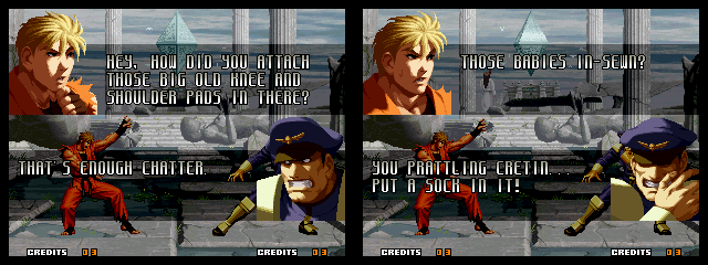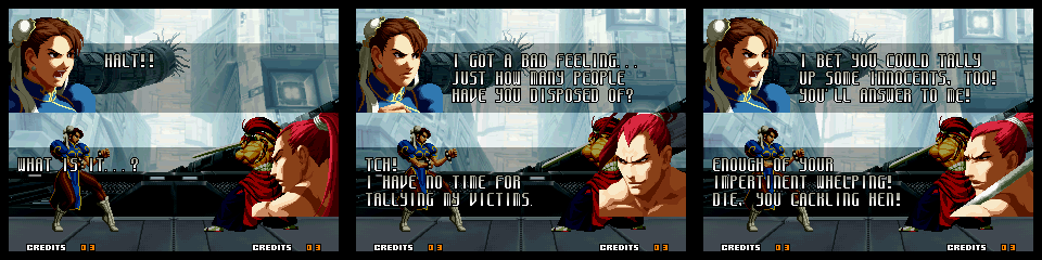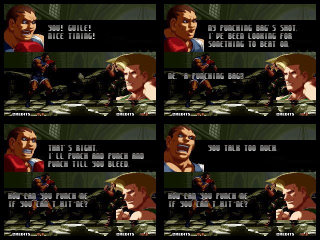A brilliant retort by M. Bison. Never have we heard such skill with words since Raul Julia's performance in Street Fighter: The Movie |
