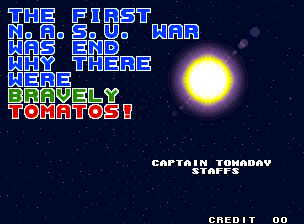 A tomato shooter may be pretty wacky, but it's nothing compared to Parodius. Parodius has penguins with machineguns, I don't see any of those in Captain Tomaday! Parodius also has giant showgirls and cat submarines, which Captain Tomaday seems to be sorely lacking in.