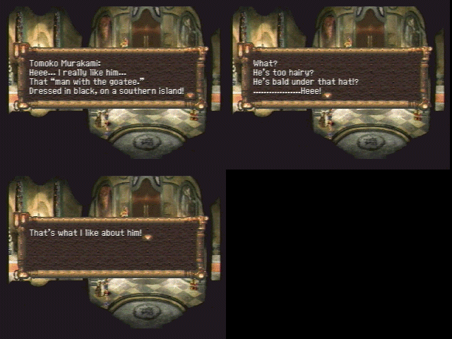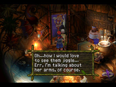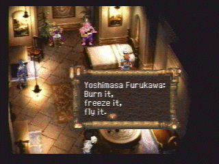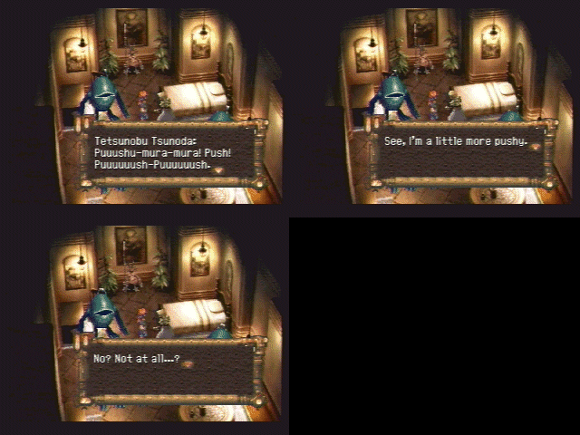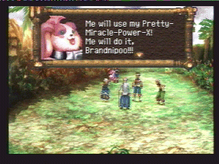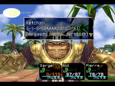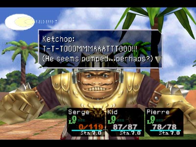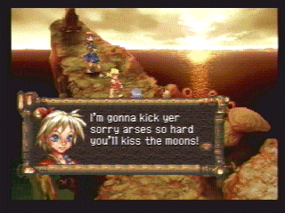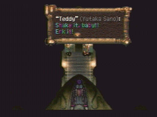 Can anyone tell me why there are quotation marks? | Ho ho ho, how cute. Now die | Oh, yeah. Cellulite arms are sexy | I think this is supposed to give you some clue about the enemy's next action, but I just don't get it | Square has certainly come a long way from older (and arguably more helpful) battle messages such as this one | It is important to have good posture, Pokey! | Shit, havn't we gone over this already? | This is either a really stupid mistake or a nonsensical pun