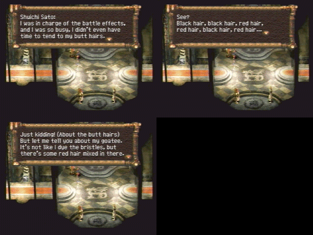 Just think, in ten years he'll show his kids this game that he made, and when they see him in the ending he'll be talking about ass hair