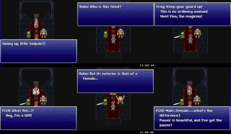 How many ways can I say that I love Chrono Trigger? I love Chrono Trigger. J'aime Chrono Trigger. Kurono Torigaa daisuki yo! Ich liebe Chrono Trigger! (Thanks, NinjaBoy55) cHr0n0 7r1gG3r 0wNz j00.