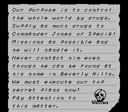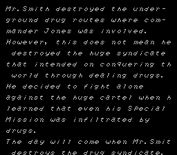 A rolling thunder clone. It's not just most of the elements, though, it's EVERYTHING! Well, except instead of a cool secret agent theme, it's got a fucking stupid Reagan-esque drug war storyline. Yeah, that's just great, let's send agents to stop the fucking drug lords we're secretly paying!