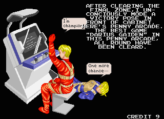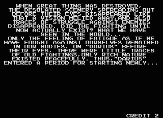Well, uh, shit. Now I'm depressed | You know, I have no fucking clue what the hell is going on here, and don't know if I want to | "Uh, shit. Darius is gone. What do we do now?" "Who wants Ice Cream!?" | Oh Taito, you wacky funsters! Always pulling the ironic twist ending on us! | So they just saved some fucking Ewoks. God, now I wish they had gotten blasted out of the sky | "It was all just a game..." No fucking shit. | Yes, the pilots were just a couple of schitzophrenics who had gotten a hold on secret military starfighters.
