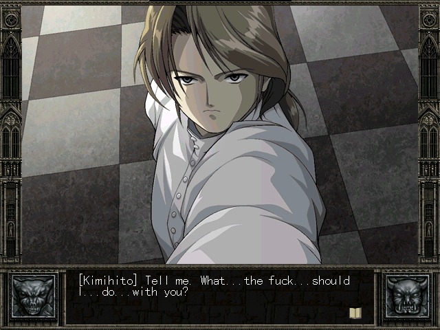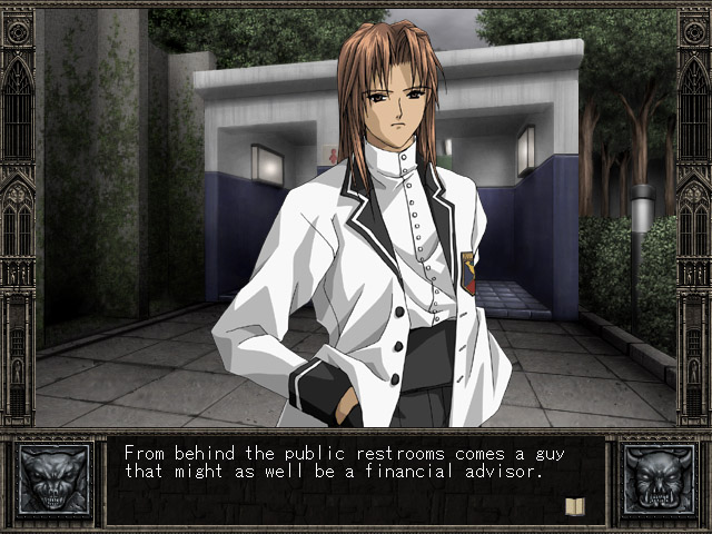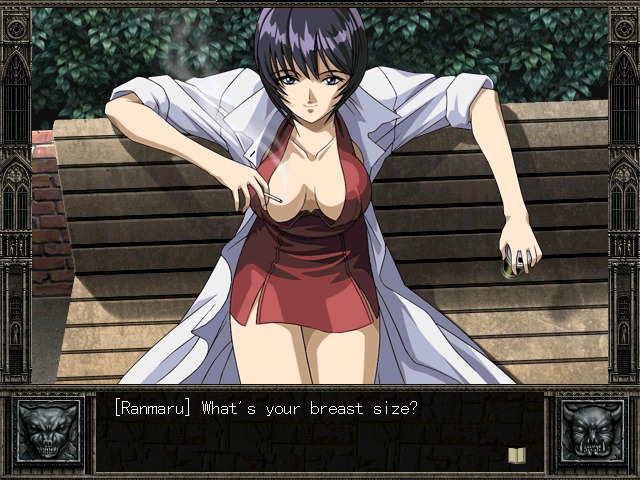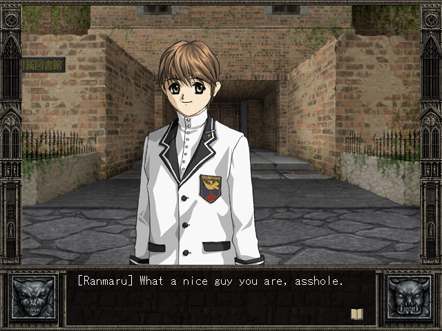 Especially since that strange man paid us a large amount of money to let him put hidden cameras all over the school... | Stevie? Is that you? | This one speaks for itself | From the look on her face, I'd say the answer is yes | Just like a tin of sardines. A tin of sexy, female sardines. | Forget about the ecstacy for a moment and start making some goddamn sense | Ranmaru is a master of disguise | That's the strangest insult I've heard since "weeniemeister" | Don't make me choose! | TELL GHOST STORIES | Ranmaru obviously knows that chicks in H-Games never get offended | Yes. I'm talking to you. Please stop misquoting Taxi Driver and listen. | I hope this is heading where I think it's heading... | Fell how weak you truly are! | Well, nothing that a couple of hours with an illegal copy of Photoshop can't fix...