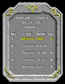 The intro: innovating the world of speculative science fiction The ending, with its brilliant sequel setup: entrust the planet to them so they fuck it up again. Could these "Braves" be the mortal enemies of the Badds?? | How do you get a name like "All or Not"? | Namco makes a sad attempt at sounding ominous. What's wrong with a hearty congraturations? |
