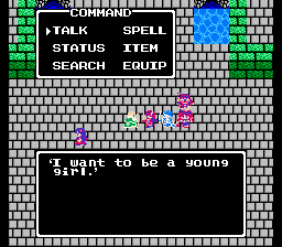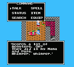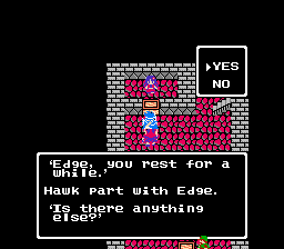 Well, it was either that or Sodomy City | Uh, yeah... "pepper" | Whoa, he threw us a curveball there | sounds synonymous with cats: meow, purr and "sigh" | "Hawk part with Edge." | DUHHH BUHHH | cool king | for the massive undertaking of Dragon Warrior 3, Enix recruited the best Old English scholars they could possibly afford (i.e; bums off street / one-armed prostitutes) | Uh, then how do you know his name? | ... |