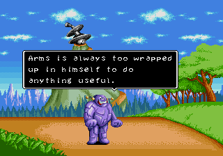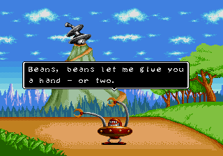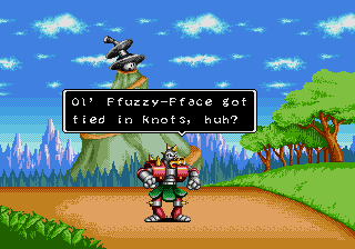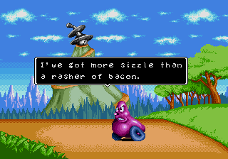 "Arms is always too wrapped up in himself to do anything useful." More egg puns than a Denny's menu! "I reckon I need to pioneer some new techniques." "I've got more sizzle than a rasher of bacon." What is this guy implying about Dr. Robotnik? "I'm Spike and I'm gonna stick it to ya!" "Ol' Ffuzzy-Fface got tied in knots, huh?" |