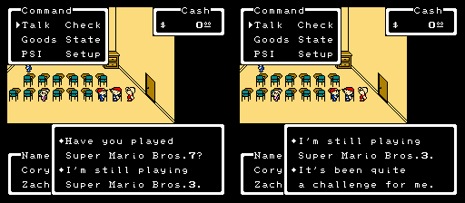 Got what? | "Don't take me for an ordinary man. Although I am just an ordinary man." | No wonder it didn't see official release. | Hey! It's the 'ordinary man' guy's daughter! | Woah, he must feel special. | "Have you played Super Mario Bros. 7? I'm still playing Super Mario Bros. 3. It's been quite a challenge for me." | What hall? | If there were scary monsters, I wouldn't be so concerned about my money. Probably more about my own continued existence! | Why do they care about whether he eats lunch or not? | "Get to school! You are a school boy, aren't you?" | EBZ certainly understands politics. | "You're a strange person. But for some reason, I like you." | Remember, soulful cry! | "I am so embarrassed! I wish I could crawl into a hole." | Mysterious sound? I don't think that "pssssshhh" is terribly mysterious. | Noodlenoggin, hehe | Thanks for the original advice!
