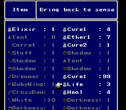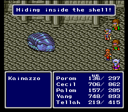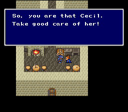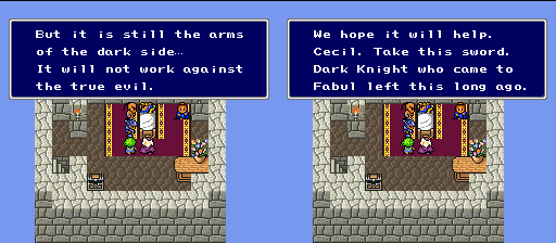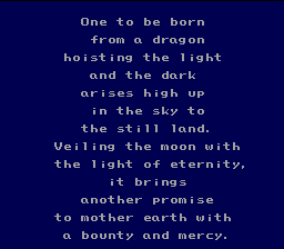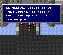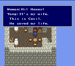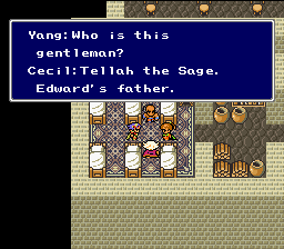 More FFII quotes! This game is damn zany: Yeah! Bust a few rhymes Yang! | "Life - Bring back to sense" | Yang remains true to his Asian heritage, and speaks in broken English | The king of Fabul hands Cecil the Black Sword, with a marvelous speech to go along with it | "Is that true!" | "I am alright. And I am a white wizard. I won't bother you." | "So you are that Cecil! Take good care of her!" | "Wow! You noble looking!" | Ah, who could forget this memorable poem, "One to be born from the dragon..."? | Last time I checked, Tellah wasn't Edward's father | "Hiding inside the shell!" | I once again validate my opinion that Kain is crazy | "This is Agart. The village of those who have ancestors who were dwarfs." | "Stars of Dream" | "All Those Chocobos" | Although I'm usually against battle cries, Yang's just kicks too much ass! | "Metals get so heavy and stuck in a cave on the island of northeast. Better watch out!" | Sagely advice from the clerics of Toroia | Damnation! It's a magnetic field!