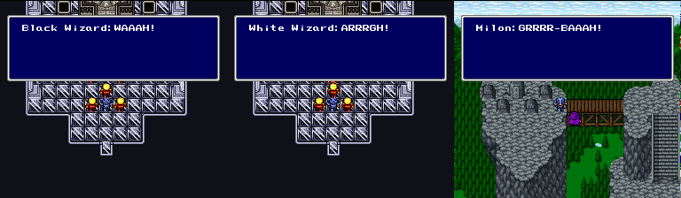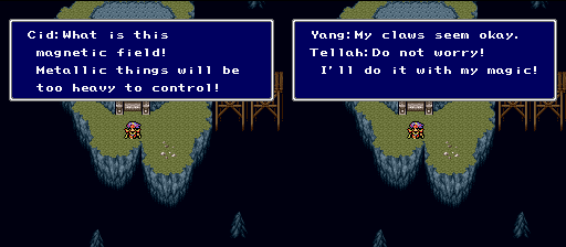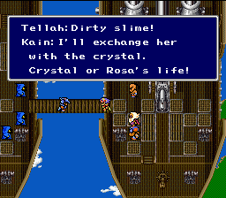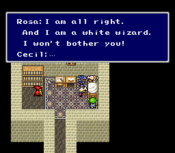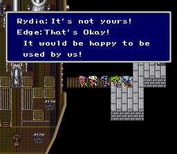 His speech was actually pretty good until he muttered "puff". Come to think of it, those constant periods were pretty annoying, too | Rydia screams. 'Nuff said | An interesting conversation between Edge and Rydia