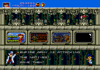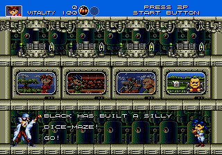 "Empire Army is attacking the natives! Save them!" "Black has built a silly dice-maze! Go!" Yes, it can only fire rapidly so far Yet another wackily named boss | Did he steal the "Bravoo Reg" from Appooh? | Watch out, he had tacos... | Just be glad you didn't awaken the power of "destrucity"! | Watch out for the army of ducks! | Sounds like an attack the Care Bears would use... | Ironically, he dies right after this... His idiot brother designed all the other characters | Blast! Our plan for eternal darkness has been foiled again! |