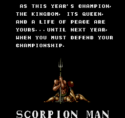 Well, this is awfully morbid | There's just so much wrong with these guys. They look kind of like Blaster from Mad Max: Beyond Thunderdome, so I guess that explains it. HE HAS THE MIND OF A CHILD! | Another great ending | Uh yeah, that's a "Life of Peace" for sure. At least you get to do the wild thing with a woman who actually gets to bathe | I guess for this game, next year's opponents were "fiscal reality" | DA NA NA NA NA NA NA NA - DOTMAN! | You could really get around in the VG world if you had some Faxanadu money | What is he going to do? Stick gum in your hair? That's the shits to get out. |