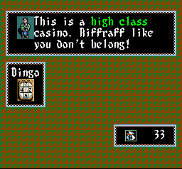 You know, most high-class casinos don't let you bet on bingo...are you sure this isn't a high class retirement home? | How about you crush my money, and take me instead? | They don't look like horses to me...hey, that one's got a beak and feathers! | I know some things. Can you tell me the other ones? | Trust me, you don't want to know.