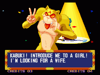 Kabuki, a form of Japanese theatre. What that has to do with a fighting game, I have no clue. The Japanese are fucked up (in a good way).