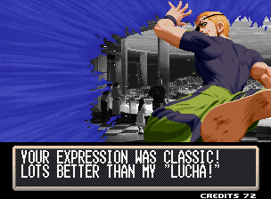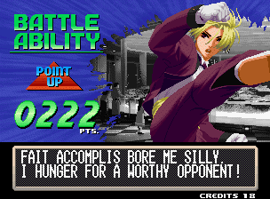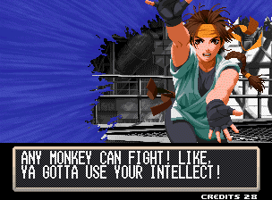 Yes, violent fighting to come again, but this is the last time that violent fighting comes from SNK. With sumo wrestling schoolgirls and lucha libra pirates (Eyepatch=PIRATE), this one's probably the best one yet.