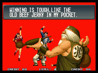 Old people are supposed to be wise, but you wouldn't think that from this lovely analogy | ...Well, last fight until the next KoF increment, at least... | Joe has got the MAD wit