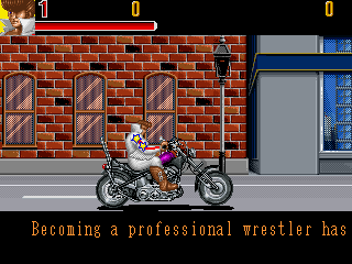 Yo! | You know how they put some of the, er, differently abled... kids at school in helmets to prevent them from beating their heads against things and damaging the few brain cells that genetics dealt them at the beginning? | Yeah, sure, wrestling heros (sic) unite... | I FUCKING GET THE POINT ALREADY | ...Well, until the WWF learned that people like tits and guys simulating masturbation more than noble heroes... It is a sad time for followers of DESTRUCITY! |