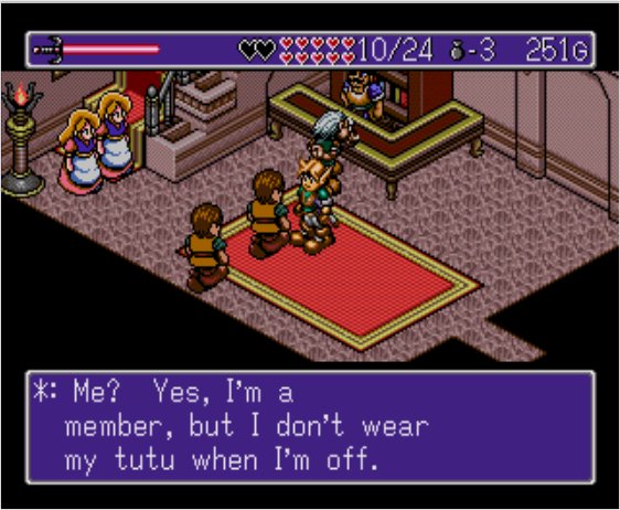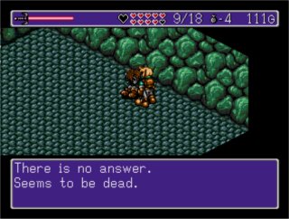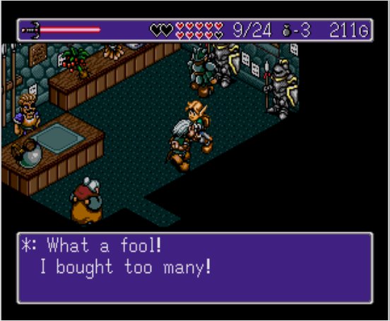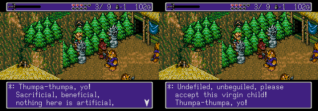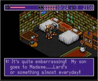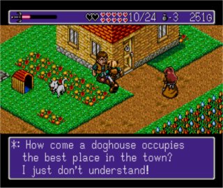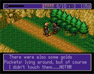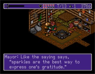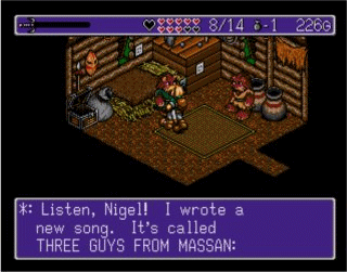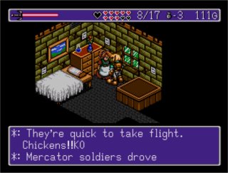 After all, only someone possesed by the devil could have the power or EVIL to destroy a BRIDGE! | I don't think there's any quip that can truly contain the low-brow humor of this quote... | "What next? People OWNING animals?" | "Careful though, he's eccentric!" | Hot on the Billboard charts, it's some fuzzy thing with "The Farmer's Song"! | The Faxanadu monetary system seems to spread more than the metric system... | Well, that spot in plain view when entering is a great spot then | I pity the fool... | But not after their unconcious! | What are the odds? | Lying abilites that are in the caliber of Daffy Duck... | A proverb worthy of Bad Street Brawler | "Allow me to thank you by chewing on this tinfoil!" | And now, the new hit from the fuzzy guy, "THREE GUYS FROM MASSAN!" | Oh Pockets, you're such a crazy funster...