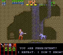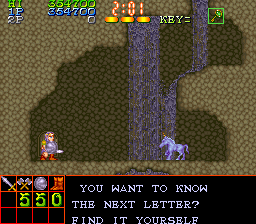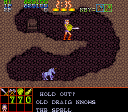 Thanks to Badman for this...game. Best I can tell, this is an old NES game where you're a wizard...or warrior..of sorts, anyway you're a guy trying to find...something. Think sidescroller with some RPG elements. I wonder why it wasn't hugely popular...
