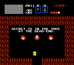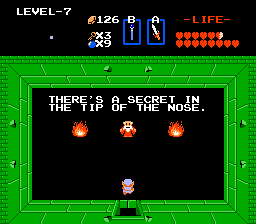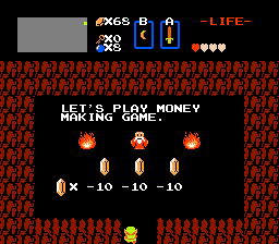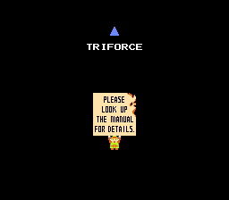 The wonderfully written intro! A winner is you! | Part 2 of the intro: "All of Treasures" | Part 3 of the intro: "Please look up the manual for details" "Eastmost Penninsula is the secret." "Let's play money making game!" Thanks for narrowing it down, bub. "Secret is in the tree at the dead-end" "Digdogger hates certain kind of sound" "Ones who does not have Triforce can't go in" I think this is a subtle way of telling Link he has some snot on his nose |