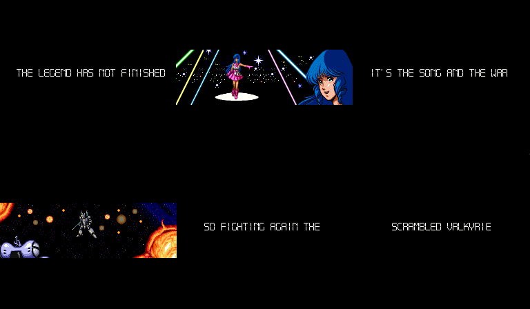 The intro to Scrambled Valkyrie "We sot a new machine, for the fighting. Now the time to scramble valkyrie again" The Ending! I want to decide to die if I'm hit with a massive laser charge! Oumlauts and Hearts? Japanese has just got a whole lot harder! |