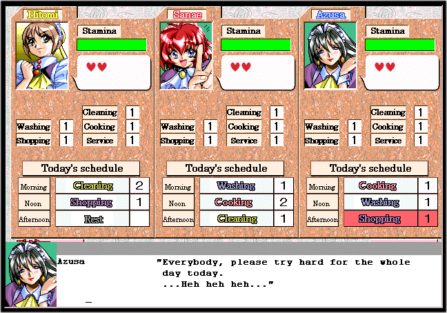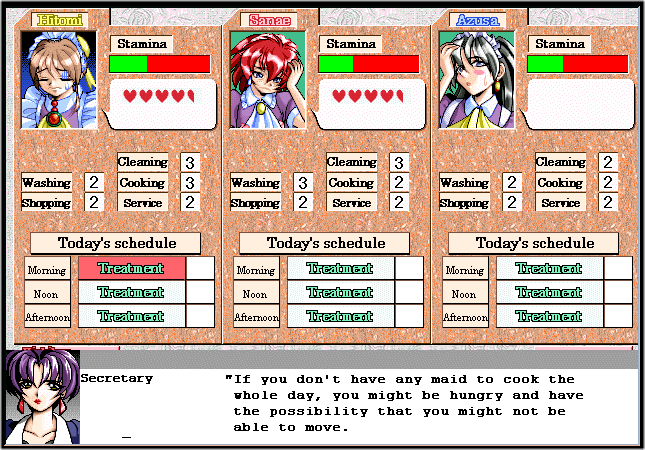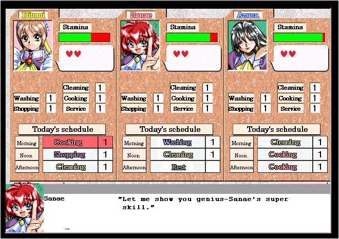 The game where you're given the important task of teaching three girls how to become the perfect maids in cleaning, washing and cooking. Oh, and blowjobs, and anal as well...