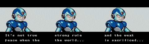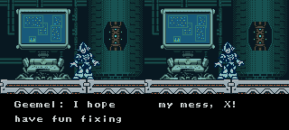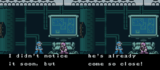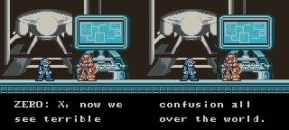 Geegel always sees someone's action before he attacks them | Maybe sharing one brain had something to do with it... | I had no idea they were so close! | Terrible confusion is the WORST KIND of confusion! | It sures looks like this is end to me | Middy overcompensates with the drama since he just sits at his damn computer the whole game and doesn't help a bit | Evil X? Does Dr. Light totally lack grammar skills, or is there some boss fight I missed? | X has some great morals, for sure! | The laugh makes him even MORE mysterious | You hope WHO does? | There's more than one of them. Stupid Zero... | Another retarded laugh.. do they think this makes them sound scary or something? | No one can program a back ground like Ryutaro's Mama!! | Why the hell are you telling ME this?? | H4X0R3D | I'm sure it'll come back to me when you show up to kick my ass.. | Zero spoils the drama when he starts to talk | When you narrate your moves, someone's eventually gonna catch on.. | But WHICH wall are you talking about?! | Damn that tough evil! | Zero should just stop talking altogether.. | Hey, if it makes all the strong people happy, let them kill that one weak guy! | Isn't that supposed to be a question? Maybe X should stop talking, too..