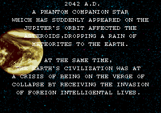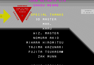 | Um, I'd like to find whomever wrote this nonsensical intro, so I can shoot him... | Yeah, if there's one thing Metal Black will be remembered for, it's the stunning DECORATIONS! | Wow, none other than 3D Master helped with this game! And it's even a 2D game! | Who will ever forget the great work of Default Members? | Ending by Hideaki Anno |