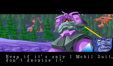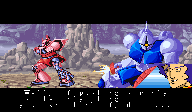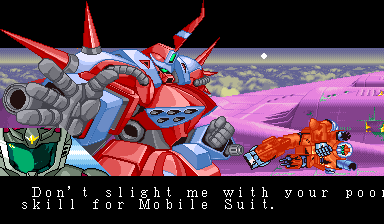 Finally, a game that punishes you for doing well! | I will try to choke down the indignity of only getting one GIANT KILLER ROBOT | Me Tarzan, you Jane | I would never impugn or cast aspersions upon thee, sir | Looks like the planned Gundam EX Revue sitcom will have to be canceled | You know, being able to kill you isn't a precondition for being your enemy... | WINNER IS STRON BADS | Sound advice for living in troubled times. | Shyeah! |