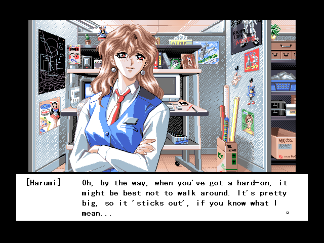 That's something I never thought i'd see in a H-Game... | Boy, good to seem them using very adult and grown up dialouge... | And you're apparently full of water... | Oh no... IT'S SCANNERS! | Why, your clothes magically reappear on you in a hentai game after the "deed is done"... | One of the greatest heores ever... | Actually, no I had nothing to do with making this game... | Man, I guess if a random guy at a petshop could get a job for that, I could also... | Sounds like how half the H-Game music gets decided upon... | ...Um, if you're a character in an H-Game, and haven't noticed a difference, you're blind, and have a numb body... | ...Maybe THAT'S why I can't get a girlfriend... | Well, it is in this game... | Just remember: "LOL F4g0T W4LlH4cK C4Mp3r!" | SO LONELY! | All you Japanese business men on this site, this one's for you... | Oh no! A sexy girl's trying to rape me! | Right... | You're RIGHT! There's that tape, right under the desk! | Oh don't worry, I believe she'll "alleviate the problem"...
