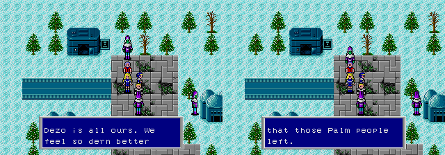 Welcome to the sexually permissive world of Dezo | That gosh dern sun! | Dern those Palmans to hall! | The Dezolians must get a lot of days off of school due to blizzards... So I guess that's why they're not too bright. | How pathetic! You sound like pages from a self help booklet! | A nice subtle way to slip in a renaming screen | Quite an interesting hobby | If you have green skin and live on an icy planet... YOU MIGHT BE A REDNECK! | Well, that solves THAT mystery | The ewok guys sure are generous. Also stupid. | Quit your damn whining Nei, you're a genetically engineered organism. I think you can handle a heavy load! | Actually, I have another method, but I don't think I want to discuss that handy tip. I suppose a pet could work too, though. Different strokes for different folks, I guess. | And it's... SPARE CHANGE! | Yes, they don't have normal electricity, they have electricity that's purple and it sings! | Good thing this game isn't in smell-o-vision | The Dezolians are tough because they have the power of THE WARRIOR! Now they're going to put you through a table, you bunch of normals. | And I bet they ain't afraid of no ghosts, either. | Must just be a coincidence, though