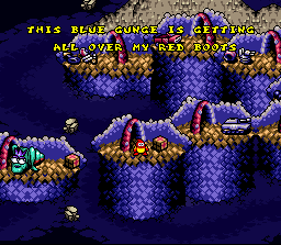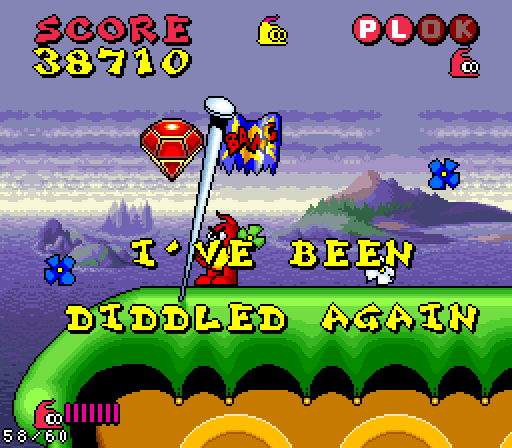 This may answer the question as to whether 'Plok' is male or female... ...I don't even want to GUESS what the fuck "blue gunge" is | ...I'm not exactly sure WHERE this sentence became fucked up, I just know it IS fucked up | Oh, fuck you, whoever made this piece of shit... | I guess that's a odd question... | Yeah, you're a regular Danny Glover It figures that Plok doesn't have anyone else to tell him this | Shut up |