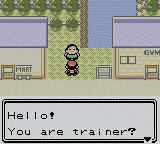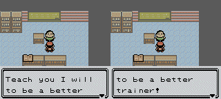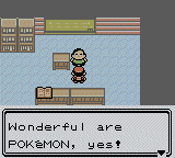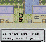 A here's Earl, Pokémon's own French-guy-with-the-English-skills-of-a-shoe. He kind of talks like Yoda: "You are trainer?" | "Win you did?" | "Very indeed nice!" | "Then study shall you!" | "Teach you I will" | "Earl, I am!" | "More from me you want to hear?" | "Wonderful are Pokémon, yes!" | I hope not an English teacher...