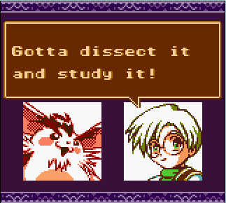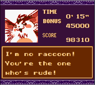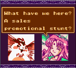 Well Greedy Girl, thanks for the terminology lesson | This sounds like an issue of Super Taboo. | OH, the humiliation! | The pikachu looking thing has one fucked up language | And this sounds like something from Farmsex.com | Jason Wilson, eat your heart out | Pretty morbid for a cutesy game | So they checked all the bugs in their sleep? Real reassuring there, guys | Err, he doesn't look it | The marketing guys. OYAJIIIIII! | Best be respectin' your Nana Papa | It surely is not | Cruel and unusual | The house of Pto is too good for you! Like, whatever! | I thought it was a rabbit? Or a Pikachu? | What, is she trying to get her to buy a birthday present or something? | HAHA FUNNY RACCOON | I think she's right, he's trying to sell more games by looking like Pikachu | This girl really likes giving useless trivia whenever she gets anything |