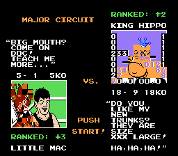 "Also playing the role of Mac, It's you!" "Surrender! Or I will conquer you!" "Join the Nintendo Fun Club today! Mac." "You will fall down!" | I think King Hippo needs to lay off the porno a bit Nice stereotype. Also - Check out the hubris involved in this picture |