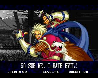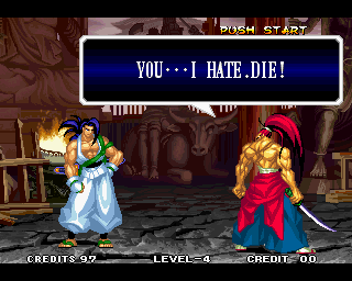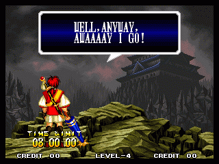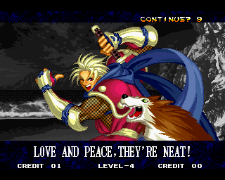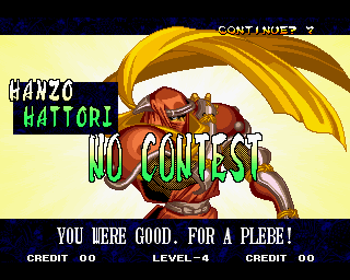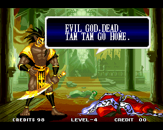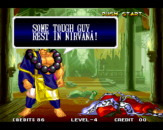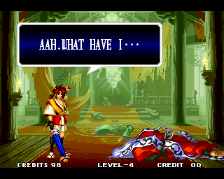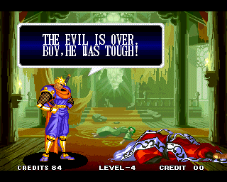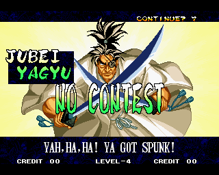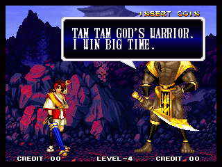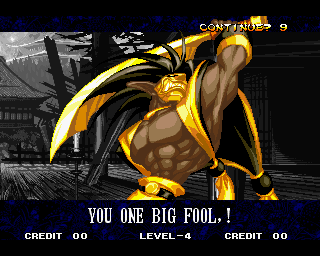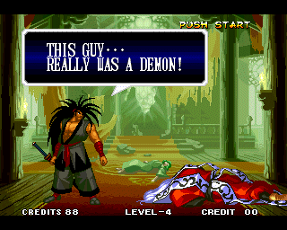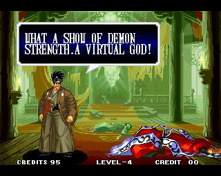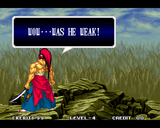 VICTOLY! | "You ware worried abuot me?" | If you read one of the credits backwards, you'll find that the Samurai Shodown 4 team has a lot of respect for everyone! | "Spacial Thanx to: ALL SNK STAFF"