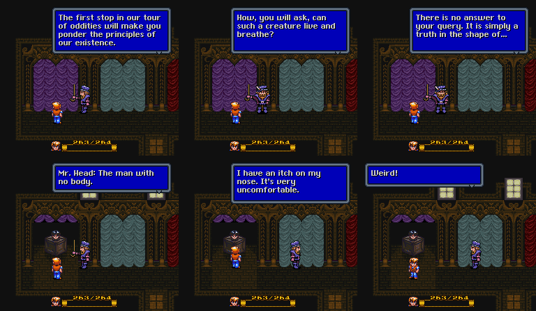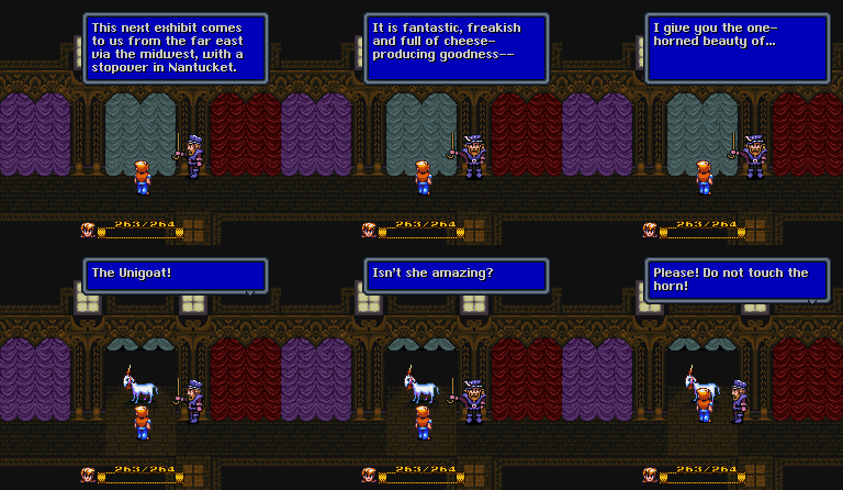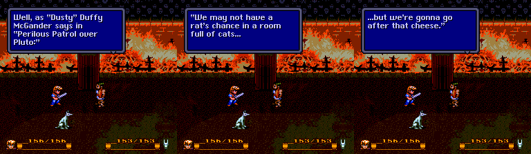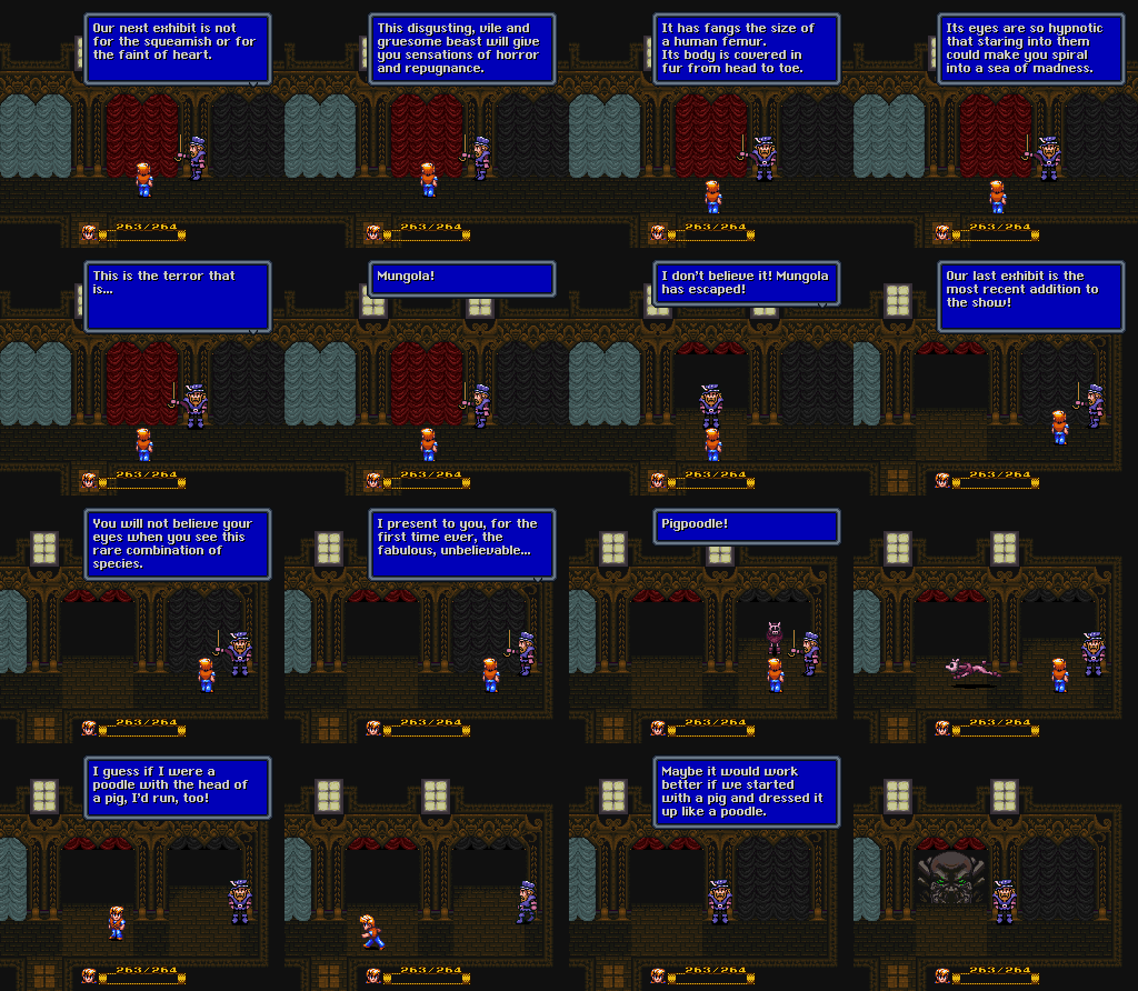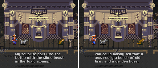 But can HE magle mosquitos? | Hey, you can ALWAYS use a still-beating heart... | Fine then, just put your face in the glue... | The ferry across the desert, featuring the kick-ass ferryman skeleton: Part One, and Part Two | Disgusting... | I'm glad he doesn't start recounting tales from his favorite porn movies after that... Well, then again... | Well, what CAN compare to the great caverns of Makanda? | The Femur of Fury still can't compare to the Duodenum of Destrucity! | I just hope Pokey's retarted mother doesn't smash him a couple minutes later... | How can't you like that dog's pure style? | Meet Tiny