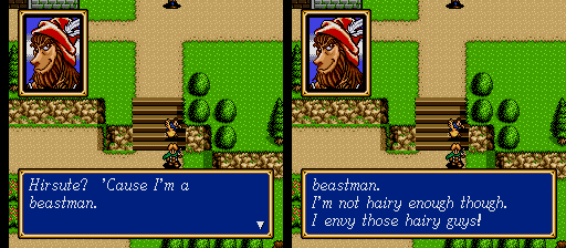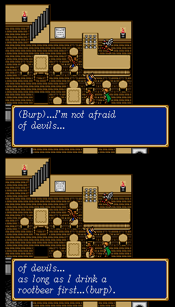 A 500 page study on, uh, being good | SEGA ADS!!! WOOOOO! | A topic I have spent many hours pondering | JUST EXECUTE ME ALREADY! I don't WANT to answer "yes!" | Nothing can ruin this bread's mood, not even being sliced up and slathered with fat | I see a well, and I'm like "RAD TO THE MAXXX!" | You tell me | Uh, yeah | You just try it | SF2 has the best library ever | A very regal groan | Beastman insecurity | I bet the pricks don't let you read it either | The honey was able to pick up the fact that STRIKER didn't want him anymore pretty quickly, you know, because it's so bright. | Really great spot there | Pretty funny there, buddy | Death threats from NPCs? Be afraid. | "But the love affair is over in a few days, then they just get annoying. Fucking novelty animals" | Well, you know what they say, it does a body good | Brought to you by RPG NPCs Against Drunk Driving | Hopefully Megaman will recieve a similar weapon in later games | Don't drown your problems in root beer! | Why do all monsters talk in broken Ayla-english? | Oh, a real help you are in battle | VIVA LA REVOLUCION... DE FRIENDSHIP! | Pretty smart main character