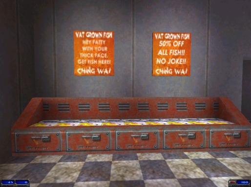It's not just Aura Fizz, it's new BIG-ASS Aura Fizz! | Uh, can I plead the fifth? | Hey, it's still sounds better than any of the boy band shit. | Extreme to THE EXTREME! | Hey, we ALL do, but I don't go around advertising about 'em... | Remember, here at Monolith, we'll keep the light on for ya. | And keep in mind, we're talking about JASON HALL'S calves! | Then there was a game called Blood 2, and things took a turn for the worse... | Wow, an actually well done Evangelion spoof! | BLARGH! FATTY WANT VAT FISH! | SO many choices... | Good ol' sexual innuendo! | Fight those fascist laws, whiteboard artists, who fight injustice everyday of your lives! | I will | Even worse, Kura's a dickchick who used to be your girlfriend's older brother! |